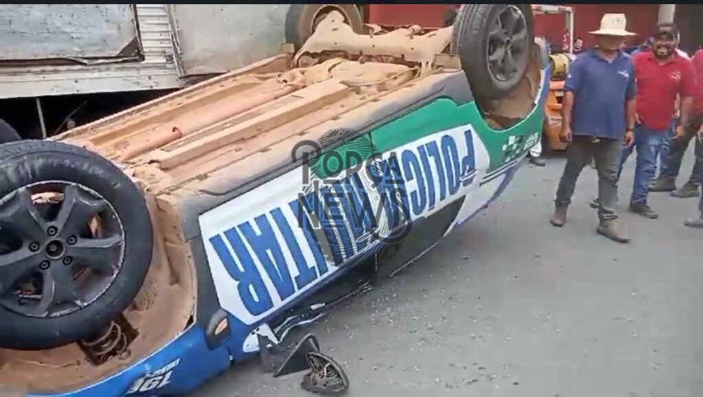 Uma viatura da Polícia Militar capotou na tarde desta sexta-feira (14) na Avenida Anhanguera, em Campinas, bairro de Goiânia(GO). Dois policiais que estavam no veículo sofreram ferimentos leves, mas passam bem.